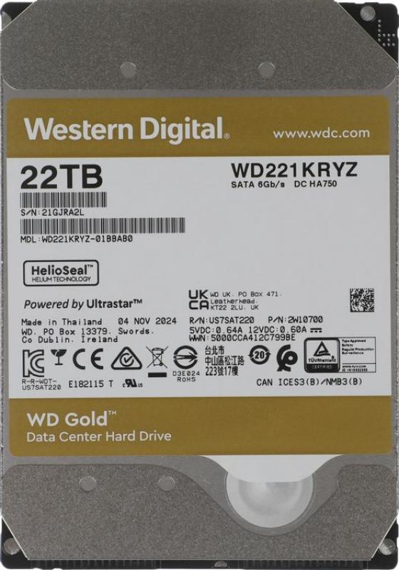 Жесткий диск WD 22TB, 7200rpm, 512МБ, SATA [WD221KRYZ]