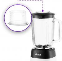 Блендер KITFORT КТ-1381 — стационарная модель мощностью 500 Вт с двумя скоростями и импульсным режимом. Объем стеклянной чаши составляет 1,5 л, ножи выполнены из нержавеющей стали. Корпус изготовлен из пластика, крышка чаши оснащена отверстием для добавления ингредиентов во время работы, а колпачок отверстия совмещает функцию мерного стакана. Съемные части можно мыть в посудомоечной машине. Питание осуществляется от сети. Габариты: 200 × 395 × 175 мм, вес — 3,2 кг.