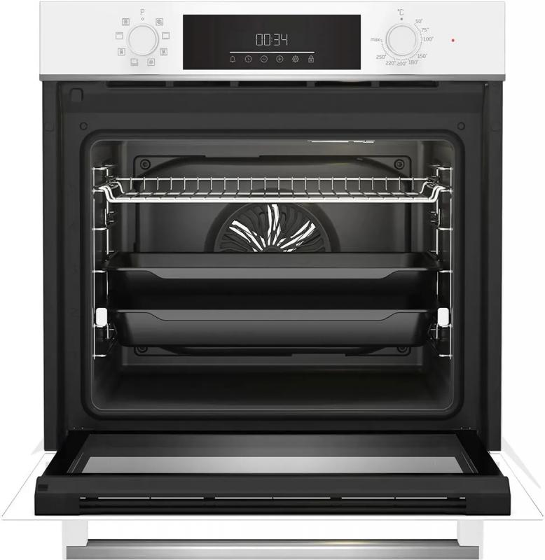 Духовой шкаф BEKO BBIM14300WMS электрический. Модель оснащена поворотными и сенсорными переключателями. Внутреннее покрытие выполнено из эмали с каталитической очисткой. Имеется электрический гриль и функция конвекции. Мощность подключения составляет 2600 Вт, максимальная температура нагрева 250 градусов. Духовой шкаф включает электронный таймер и дисплей. Обеспечено освещение с одной лампой подсветки. Количество программ управления - 8. Имеются телескопические направляющие и защита от детей. Дверца открывается вниз с двумя стеклами. Класс энергоэффективности A. Цвет белый. Размеры духовки 59.4х56.7х59.5 см. Вес 32.4 кг.