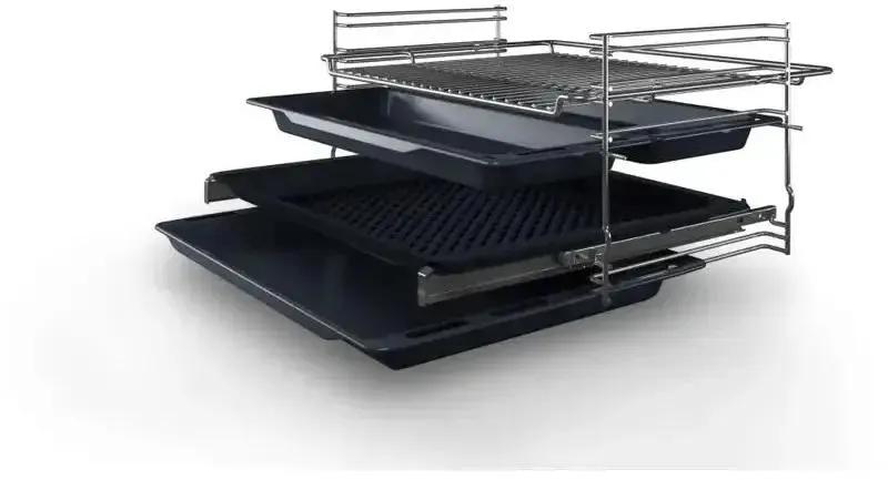 Электрическая духовка BOSCH HBA530BB0S с независимым управлением оснащена поворотными утапливаемыми переключателями. Мощность подключения составляет 3400 Вт при объеме камеры 71 литр. Максимальный нагрев до 275 градусов обеспечивает эмалевое покрытие легкой очистки. Имеется конвекция и электрический гриль. Духовка многофункциональная с четырьмя программами работы и функцией автоматического быстрого разогрева. Дверца открывается вниз с полностью стеклянной внутренней поверхностью. Освещение осуществляется одной лампой накаливания. Цвет корпуса черный с серебристыми элементами. Габариты изделия 59.5 х 54.8 х 59.5 см, размер ниши для встраивания 56 x 55 x 60 см.