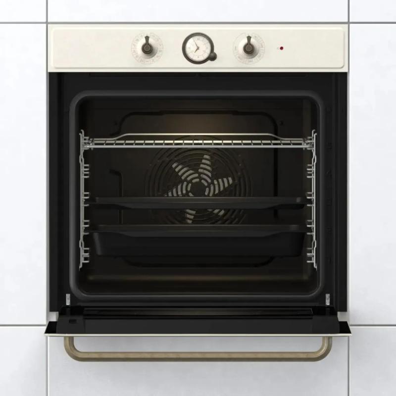 Электрический духовой шкаф GORENJE BOS67371CLI оснащен поворотными переключателями и имеет мощность подключения 3500 Вт. Класс энергоэффективности A. Объем камеры составляет 77 литров с максимальной температурой нагрева 300 °C. Внутреннее покрытие выполнено из эмали легкой очистки с гидролизной системой очистки. Имеется конвекция и электрический гриль. Модель оборудована механическим таймером и часами. Предусмотрено 13 программ приготовления включая быстрый нагрев классический нагрев с вентилятором большой гриль AirFry вентилятор с паром нижний и верхний нагрев с паром медленное приготовление GentleBake пицца FrozenBake размораживание очистку паром AquaClean и освещение. Дверца открывается вниз и имеет двойное остекление. Освещение обеспечивается одной галогенной лампой мощностью 25 Вт. Габариты духовки составляют 59.5 x 56.4 x 59.5 см при весе 28.6 кг. Размеры ниши для встраивания 56 x 55 x 59 см.