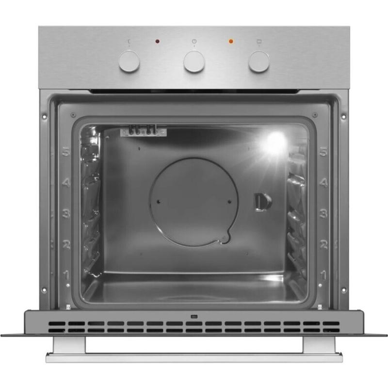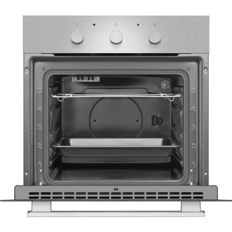 Электрический духовой шкаф Hansa BOEI64111 имеет объем 65 литров и механическое управление. Оснащен четырьмя режимами нагрева, включая верхний, нижний и комбинированный нагрев, а также функцией размораживания. Оборудован электрическим грилем и системой очистки паром. Дверца с двойным стеклом открывается вниз. Максимальная температура нагрева составляет 250°C, минимальная - 50°C. В комплект входит металлическая решетка и глубокий противень. Имеются телескопические направляющие на двух уровнях, вентилятор охлаждения корпуса и галогеновое освещение. Потребляемая мощность 2000 Вт, класс энергоэффективности A. Габаритные размеры 595x595x570 мм, вес 27.4 кг.