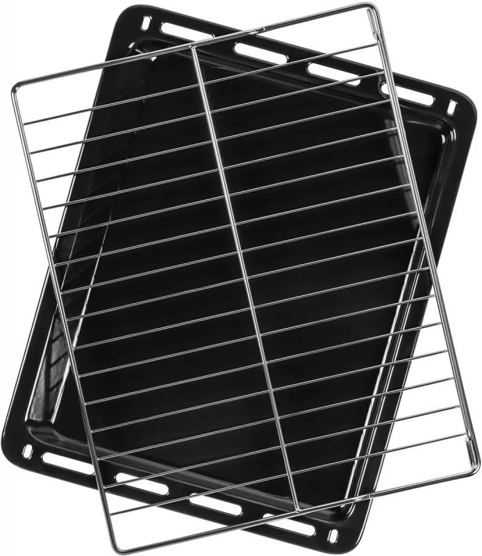Духовой шкаф MAUNFELD AEOH.749B — электрическая с поворотными и сенсорными переключателями. Объем — 71 л, максимальная температура — 250 °C. Внутреннее покрытие выполнено из эмали легкой очистки, предусмотрена гидролизная очистка. Имеется электрический гриль, конвекция, функция размораживания, таймер и часы. Духовка оснащена электронным таймером, 9 программами, 1-уровневыми телескопическими направляющими, лампой накаливания для подсветки, дисплеем, вентилятором охлаждения и трехслойной дверцей с возможностью съема. Предусмотрена блокировка от детей и индикация режима работы. Подключение осуществляется через кабель с вилкой. Цвет — черный/нержавеющая сталь. Габариты (Ш×Г×В): 59,5 × 59,7 × 59,5 см, вес — 30,5 кг.