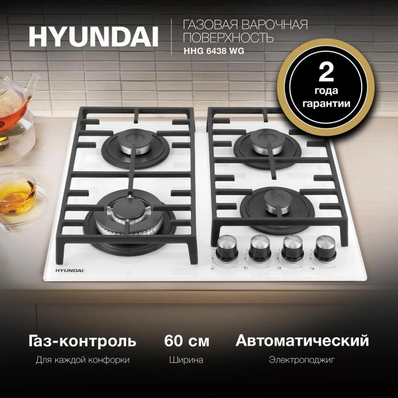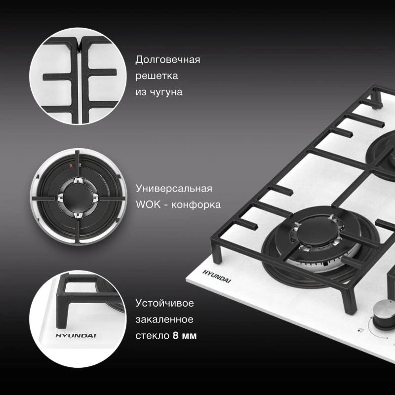 Газовая варочная поверхность Hyundai HHG 6438 WG белый