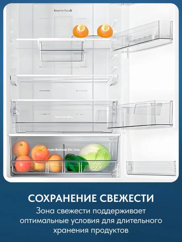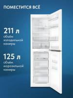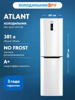 Холодильник ATLANT ХМ 4625-109-ND имеет две камеры с общим объемом 368 литров и полезным объемом 211/125 литров. Оснащен системой No Frost в обеих камерах. Холодильное отделение содержит 4 стеклянные полки, 2 из которых регулируются по высоте, 4 полки на двери и ящик для овощей. Морозильная камера расположена снизу, включает 4 ящика и имеет мощность замораживания 10 кг/сутки. Имеется зона сохранения свежести, подставка для яиц и антибактериальная защита. Предусмотрены режимы суперзамораживания, суперохлаждения и отпуск. Управление сенсорное, есть цифровой дисплей и светодиодное освещение. Уровень шума составляет 42 дБ. Гарантия 3 года. Хладагент R 600a. Климатический класс N-SN-ST. Энергоэффективность класса A+, годовое потребление энергии 318 кВтч. В комплекте поддон для замораживания фруктов. Размеры 206.8x59.5x66 см. Вес 91 кг.