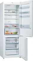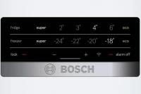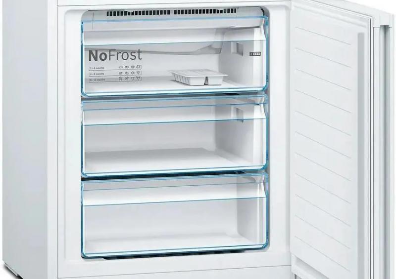 Холодильник BOSCH KGN49XWEA двухкамерный с нижним расположением морозильной камеры. Климатические классы SN и ST. Общий объем 438 литров. Управление электронное. Система размораживания No Frost в обоих отсеках. Холодильная камера содержит 330 литров с четырьмя стеклянными полками и тремя ящиками. Есть зона свежести VitaFresh 0°C. Морозильное отделение на 108 литров с тремя ящиками и мощностью замораживания 12 кг/сутки. Предусмотрены функции суперзаморозки и суперохлаждения. Класс энергопотребления A++ (европейский E) с годовым расходом 259 кВт*ч. Автономное сохранение холода при отключении питания составляет 16 часов. Используется стандартный компрессор с хладагентом R600a. Дисплей и индикация температуры, открытой двери. Защита от детей. Перевешиваемые двери и регулируемые ножки. Четыре полки на дверце. Цвет белый. Габариты 70х203х67 см. Вес 83 кг.