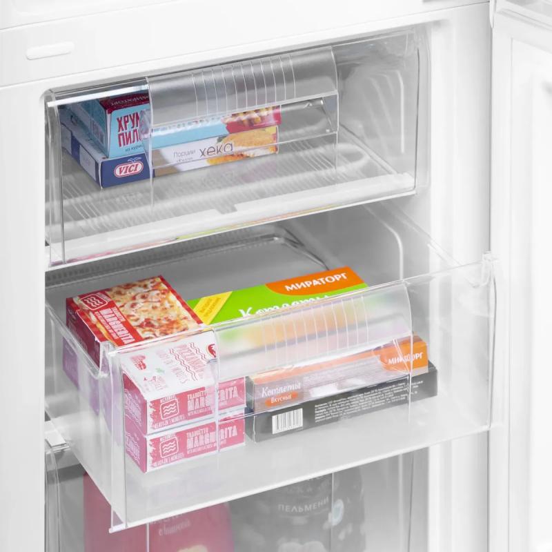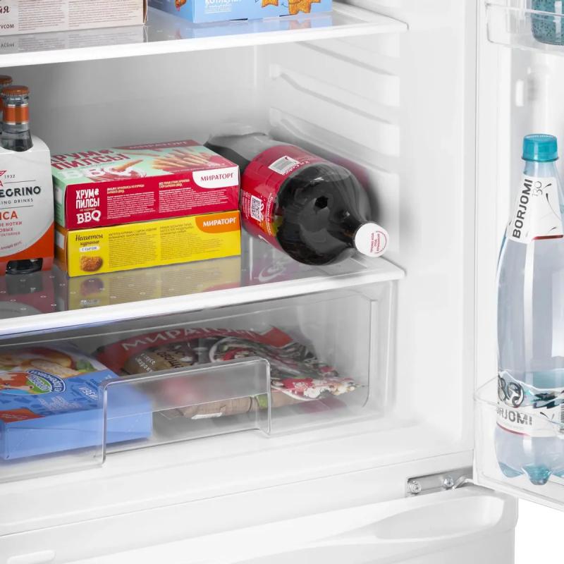 Холодильник MAUNFELD MFF180W с механическим управлением относится к классу энергопотребления A+ и потребляет 244 кВт*ч в год. Двухкамерный прибор имеет общий объем 260 литров и оборудован одним компрессором с хладагентом R600a. Холодильная камера объемом 192 литра оснащена системой размораживания DeFrost и содержит 4 стеклянные полки и один ящик. Морозильное отделение расположено снизу, его объем составляет 68 литров, система размораживания ручная, мощность замораживания достигает 3 кг/сутки. Конструкция предусматривает перевешиваемые двери с четырьмя полками из металла и регулируемые по высоте ножки. Уровень шума составляет 41 дБ. Размеры прибора 54.5х179.4х54.5 см, вес 47 кг.
