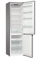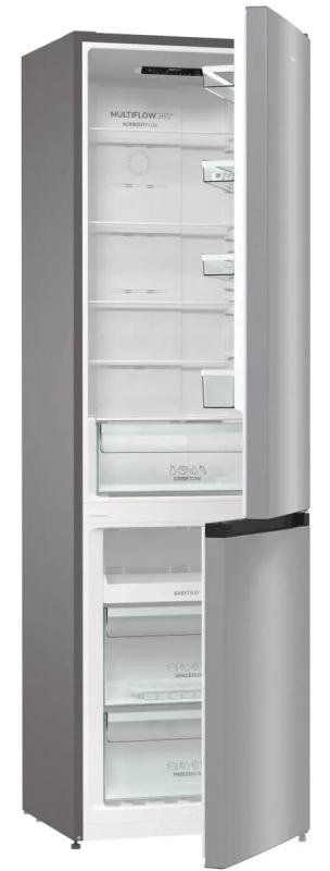 Холодильник двухкамерный GORENJE NRK6201PS4 с нижним расположением морозильной камеры имеет общий объем 353 литра и класс энергопотребления A+. В холодильном отделении объемом 243 литра реализована система No Frost Plus с пятью стеклянными полками и одним ящиком. Морозильная камера объемом 110 литров оснащена системой No Frost и двумя ящиками, мощность замораживания составляет 12 кг/сутки. Управление электронное, присутствует индикация температуры и звуковой сигнал открытой двери. Особенности конструкции включают возможность перевешивания дверей, регулируемые ножки и нулевой зазор дверцы. Технология AdaptTech обеспечивает адаптивное охлаждение, предусмотрен режим Эко и контейнер CrispZone для овощей. Хранение при отключении питания возможно до 17 часов, годовое потребление энергии составляет 313.9 кВт*ч. Используется хладагент R600a и один стандартный компрессор. Корпус выполнен из металла серебристого цвета. Размеры изделия 60x200x59.2 см, вес 61.5 кг.
