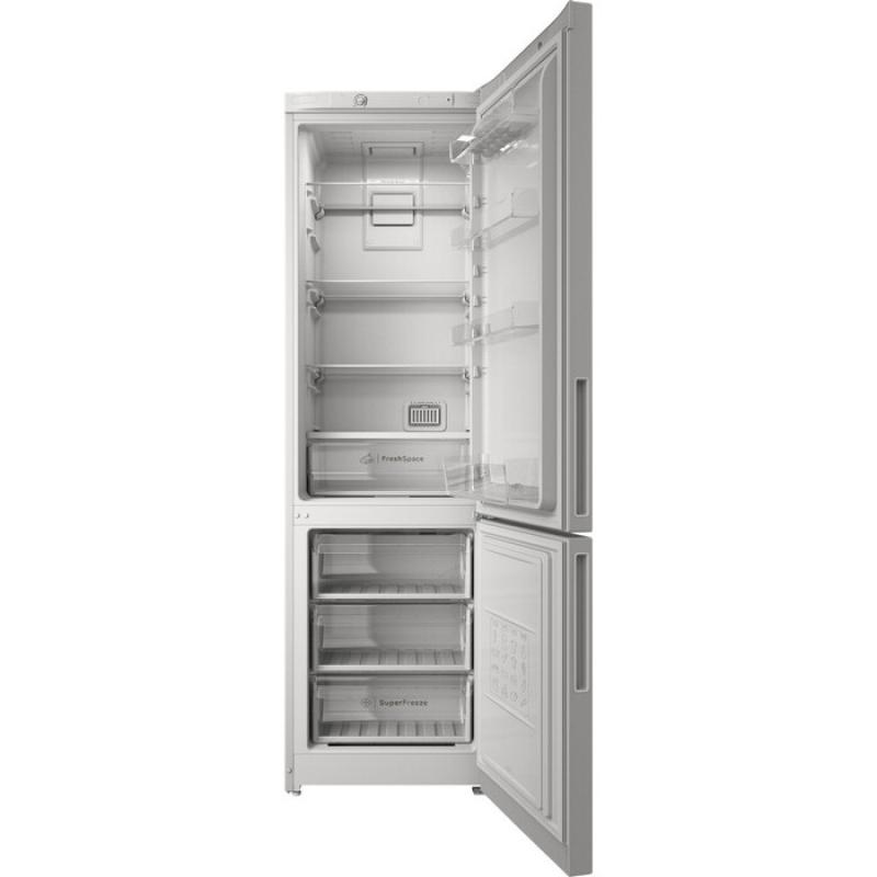 Холодильник двухкамерный INDESIT ITR 4200 W с нижним расположением морозильной камеры и системой Total No Frost в обеих отсеках. Общий объем составляет 325 литров, из них 247 литров приходится на холодильную камеру и 78 литров на морозильную. Температура в холодильном отделении регулируется до максимальных 8 °С, в морозильнике поддерживается диапазон от -26 °С до -16 °С. Управление электромеханическое, уровень шума достигает 43 дБ. Холодильная камера содержит 4 стеклянные полки и один ящик, морозильная оснащена тремя ящиками с мощностью замораживания 4 кг/сутки. При отключении электричества сохраняет температуру до 14 часов. Класс энергопотребления A, годовой расход составляет 379 кВт*ч. Используется стандартный компрессор с хладагентом R600a. Двери с покрытием из нержавеющей стали имеют 4 полки и перенастраиваются на открывание в обе стороны. Габариты составляют 60х195х64 см, вес 67.6 кг.