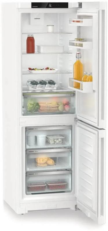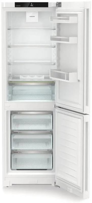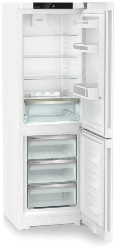 Холодильник LIEBHERR CNc 5203 двухкамерный с нижним расположением морозильной камеры и полезным объемом 319 л. Оснащен сенсорным управлением и внутренним дисплеем. В холодильном отделении объемом 225 л реализована капельная система размораживания, есть зона свежести EasyFresh и антибактериальный фильтр. Морозильник на 94 л работает по технологии No Frost, способен замораживать до 16 кг продуктов в сутки. Инверторный компрессор работает на хладагенте R600a. Двери металлические с правым открыванием, перенастраиваются на другую сторону. Есть ящики, полки из стекла и звуковая индикация температуры с открытыми дверьми. Климатический класс N-ST позволяет использовать технику при разных температурах. Потребление энергии 222 кВт*ч/год соответствует классу A++. При отключении электричества сохраняет холод до 24 часов. Габариты 59.7х185.5х67.5 см, вес 69.5 кг.