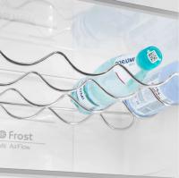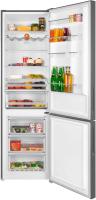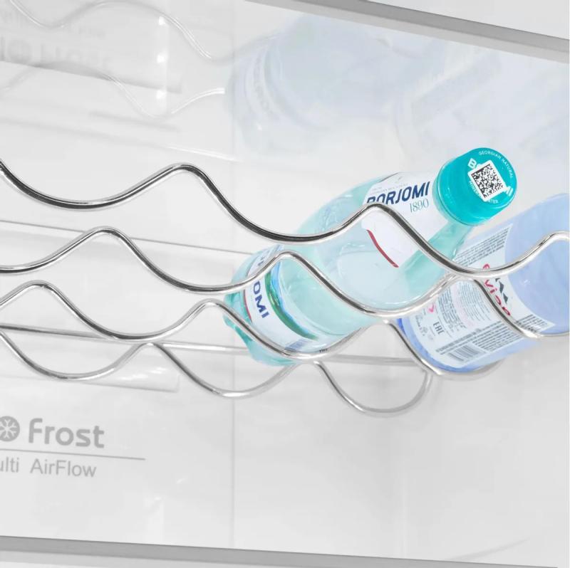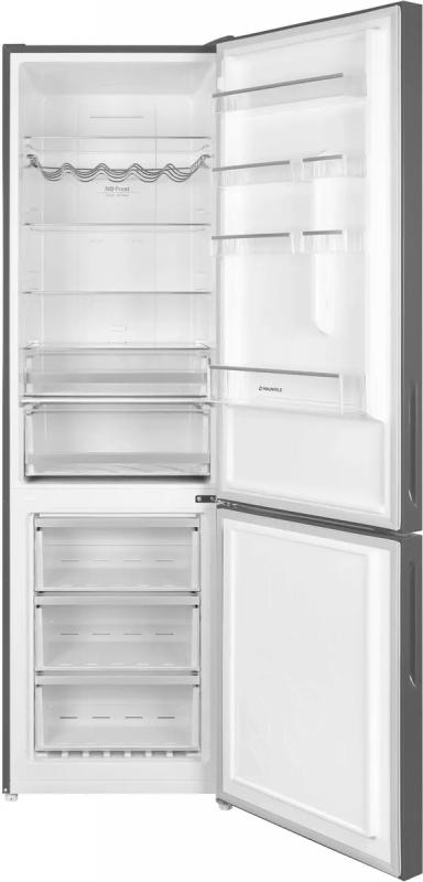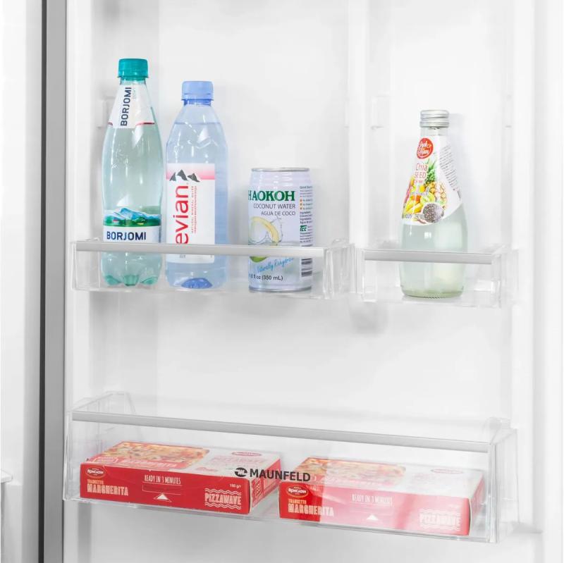 Холодильник MAUNFELD MFF200NFSE с нижней морозильной камерой имеет общий объем 377 литров и полезный объем 351 литр. Двухкамерная конструкция включает холодильную камеру на 271 литр с системой Total No Frost, четырьмя стеклянными полками и двумя ящиками, а также морозильное отделение на 106 литров с тремя ящиками и мощностью замораживания 4.5 кг/сутки. Управление сенсорное с внешним дисплеем. Зона свежести оснащена регулировкой влажности. Имеет класс энергопотребления A+ с годовым расходом 324 кВт*ч. Оснащен системой Multi Air Flow, антибактериальным покрытием и функциями суперзаморозки, суперохлаждения, режимом отпуска. Индикация температуры и звуковой сигнал незакрытой двери. Компрессор работает на хладагенте R600a. Двери из металла с шестью полками перевешиваются при необходимости. Уровень шума составляет 42 дБ. Корпус цвета нержавеющей стали. Размеры: ширина 59.5 см, высота 200 см, глубина 60 см. Вес 67 кг.