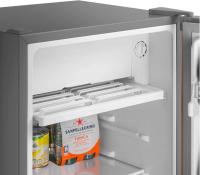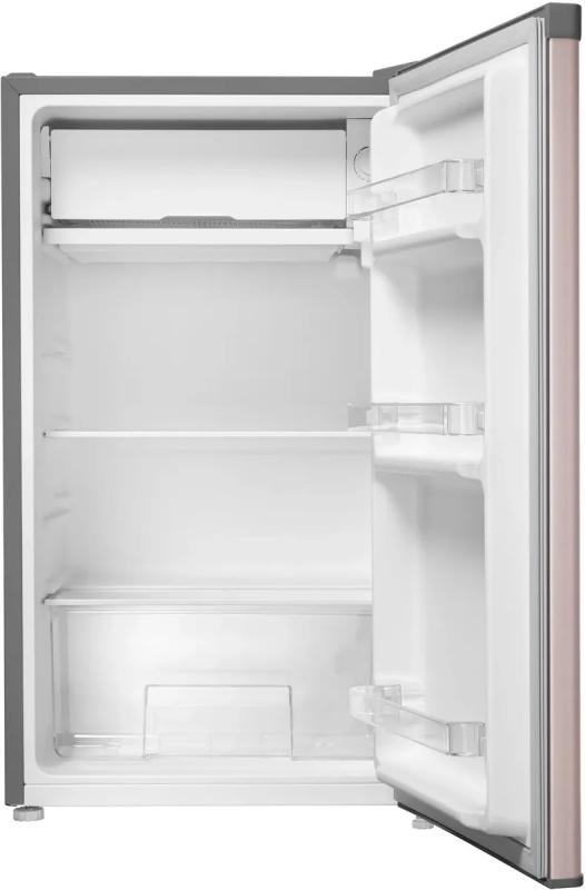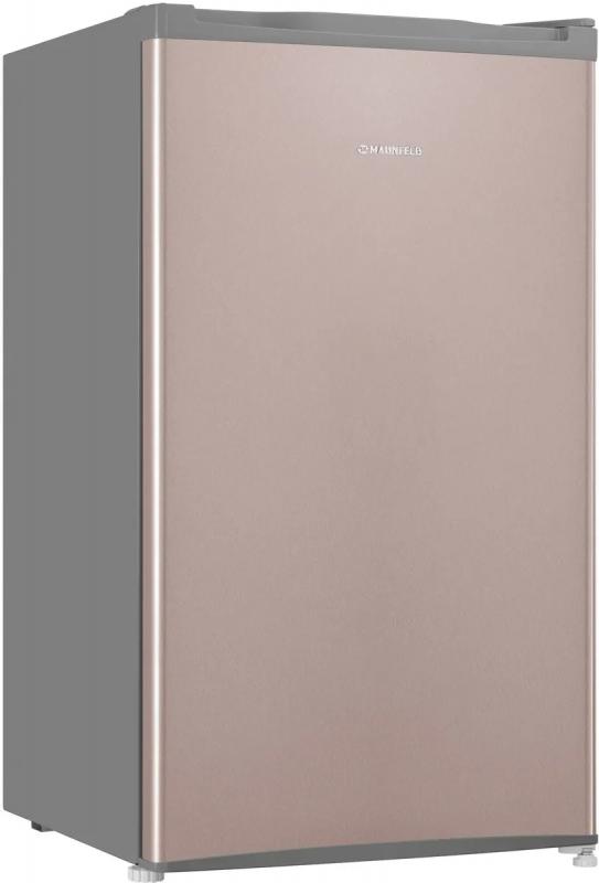Холодильник MAUNFELD MFF83GD — однокамерный без морозильной камеры, оснащённый механическим управлением и капельной системой размораживания с технологией DeFrost. Общий объём составляет 92 л, полезный — 85 л. Температура в камере регулируется в диапазоне от +1 °C до +7 °C. Внутри установлены три полки из закалённого стекла и один ящик; на дверце — три полки. Корпус выполнен с дверью из матовой нержавеющей стали, допускает перевешивание и монтаж с нулевым зазором. Уровень шума — 40 дБ, класс энергопотребления — A+ (112 кВт·ч/год). Хладагент — R600a, компрессор — один, стандартный. Предусмотрено антибактериальное покрытие внутренней поверхности. При отключении питания продукты сохраняются до 12 часов. Размеры (Ш×В×Г): 47×83,1×44,7 см, вес — 19 кг.