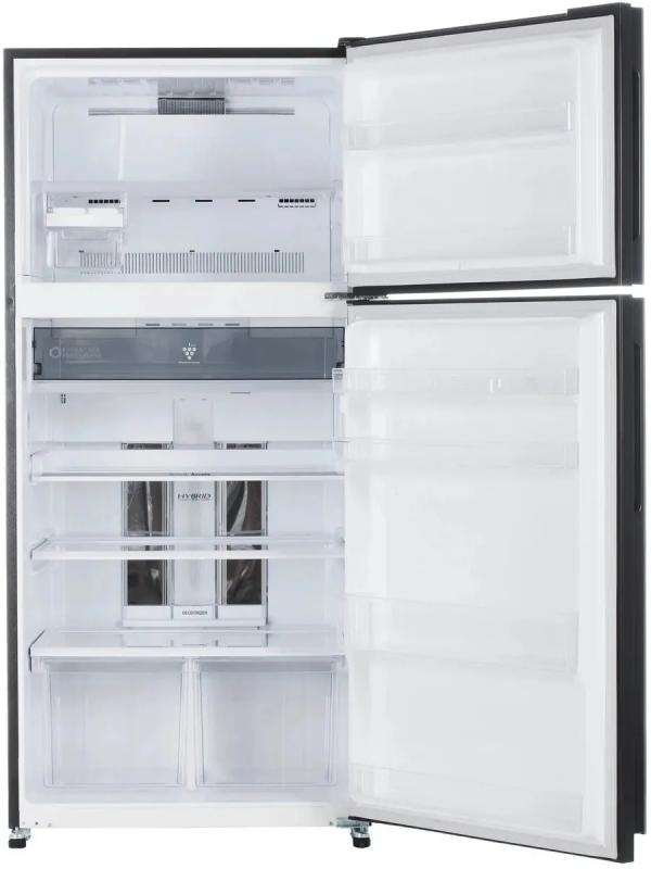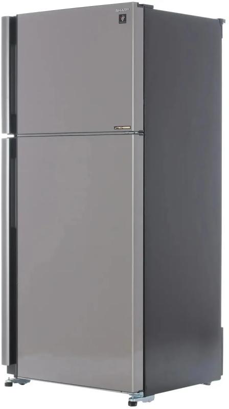 Холодильник SHARP SJ-XE55PMSL имеет двухкамерную конструкцию с морозильной камерой сверху. Общий объем 585 литров, полезный объем 536 литров. Холодильное отделение содержит 4 стеклянные полки и 2 ящика, оснащено системой No Frost и технологией Hybrid Cooling. Морозильная камера с Full No Frost имеет одну полку и способна замораживать до 12 кг продуктов в сутки при минимальной температуре -24°C. Управление электронное, предусмотрен инверторный компрессор с хладагентом R600a. Встроенный механический льдогенератор. Имеются функции суперзаморозки и суперохлаждения, антибактериальный фильтр, звуковая индикация открытой двери. Класс энергопотребления A++, годовое потребление 350 кВт*ч, автономное сохранение холода 19 часов. Двери металлические серого цвета, открываются направо. Размеры 80х175х73.5 см, вес 74 кг.