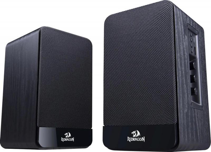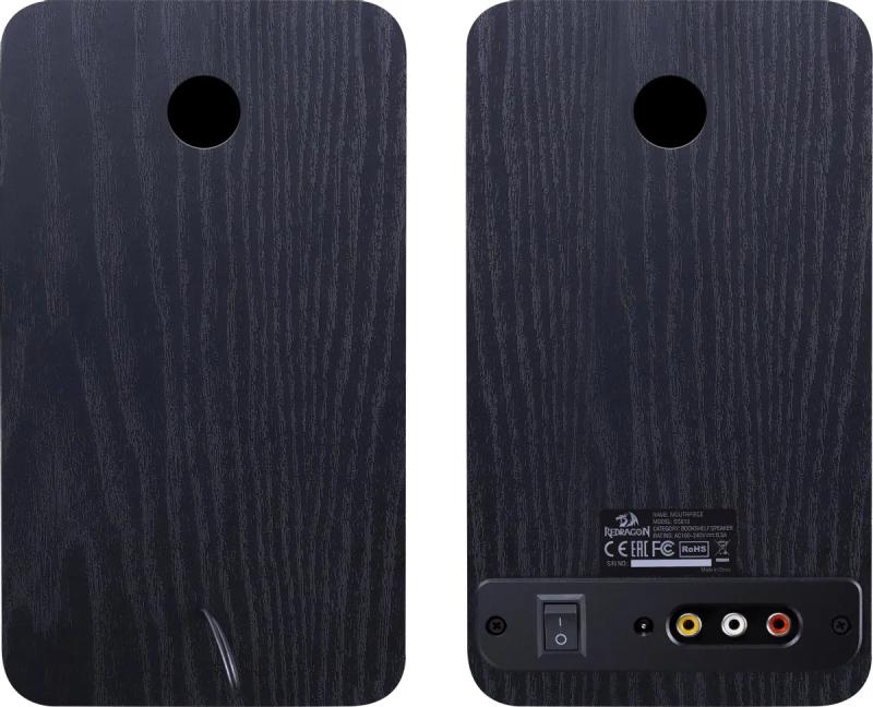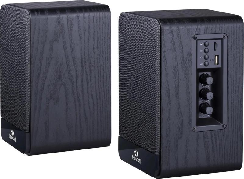 Компактная акустическая система REDRAGON Mouthpiece выполнена в конфигурации 2.0 с поддержкой беспроводного подключения через Bluetooth. Устройство питается от сети и обеспечивает суммарную мощность 20 Вт при мощности каждого фронтального динамика 10 Вт. Частотный диапазон составляет 160 Гц - 20 кГц, отношение сигнал/шум достигает 60 дБ. Корпус изготовлен из комбинации дерева и пластика. Система оснащена разъемом для наушников, микрофонным входом, слотом для карт памяти microSD и линейным стереовходом AUX INPUT. Регулировка параметров осуществляется с боковой панели. Колонки поддерживают беспроводное соединение между собой, при этом комплект не включает пульт дистанционного управления. Длина соединительного кабеля составляет 1 метр. Размер каждой фронтальной колонки равен 124 х 220 х 132 мм, общий вес системы 2.18 кг.