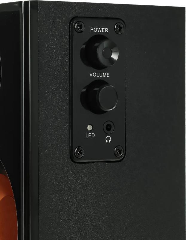 Мощность 12 Вт, число каналов 2.0, диапазон частот 100-20000 Гц, подключение: линейный вход (стерео), разъем для наушников, питание от сети, материал колонок MDF.