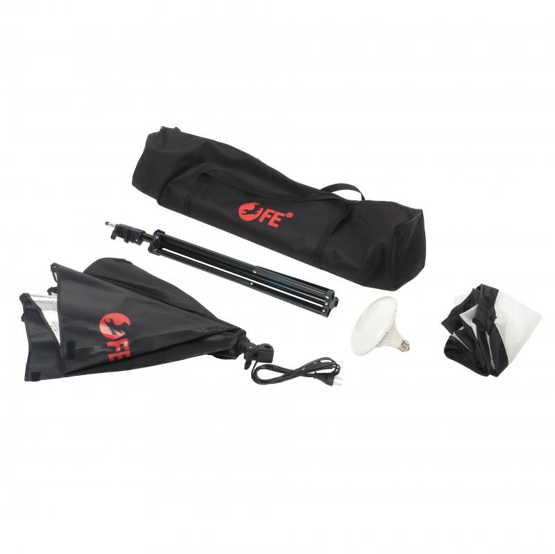 Falcon Eyes KeyLight 145 SB5050 KIT представляет собой комплект студийного оборудования для фото- и видеосъемки. Включает осветитель LH-E27 с фотографической светодиодной лампой мощностью 45 Вт, цветовой температурой 5500 К и индексом цветопередачи CRI ≥90. Осветитель оснащен несъемным прямоугольным софтбоксом размером 50х50 см и глубиной 46 см с серебристой светоотражающей внутренней поверхностью. Софтбокс имеет внешний тканевый рассеиватель на липучке. Комплект содержит телескопическую осветительную стойку высотой от 85 см до 188 см с тремя алюминиевыми секциями диаметром 22/19/16 мм и винтовыми зажимами. Осветитель крепится на стойку через шпигот 5/8 дюйма. Питание осуществляется от сети 220 В 50 Гц. Размеры: 50х188х46. Вес: 1800 г.