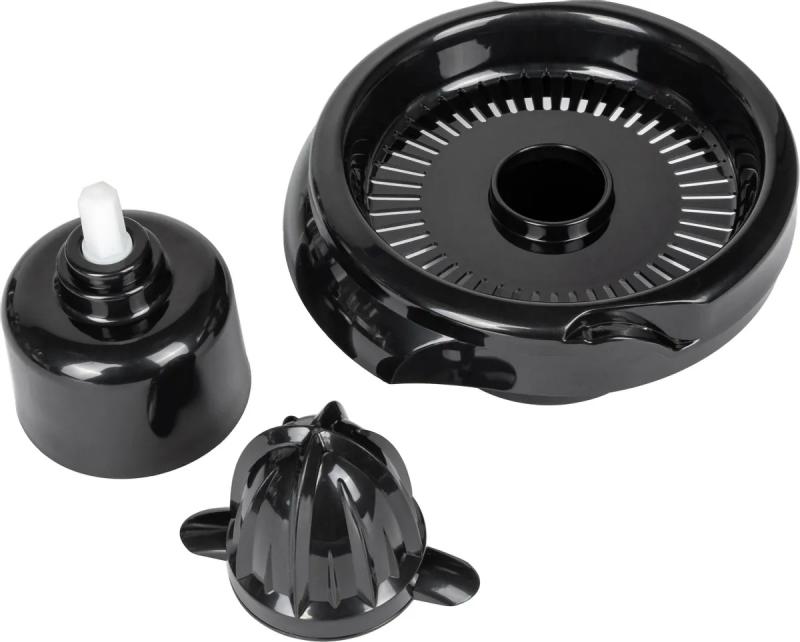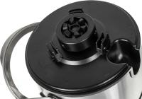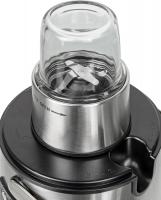 Кухонный процессор KITFORT КТ-1395 оснащен двигателем мощностью 800 Вт и пятью скоростями, включая импульсный режим. В комплект входят чаша комбайна объемом 1,2 л (пластик), стеклянная чаша блендера на 1,5 л, кофемолка (0,2 л), измельчитель (0,7 л) и контейнер для сока (0,8 л). Устройство совмещает функции терки, шинковки, соломорезки, блендера, кофемолки, центробежной и цитрусовой соковыжималки, измельчителя мяса, а также включает насадки для жидкого теста, нож и мутовку. Все съемные части разрешено мыть в посудомоечной машине. Корпус выполнен из пластика, имеет прорезиненные ножки и цветовое исполнение серебристый/черный. Габариты: 355 × 397 × 192 мм, вес — 9,3 кг.