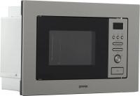 Микроволновая печь GORENJE BM201AM1X имеет объем 20 литров и мощность 800 Вт. Управление электронное с сенсорным дисплеем. Предусмотрено 5 уровней регулировки мощности. Дверца открывается кнопкой справа налево. Внутренняя камера выполнена из нержавеющей стали с поворотным столом диаметром 245 мм. Модель оснащена 15 автоматическими программами включая разморозку по весу и приготовление. Есть функция блокировки от детей и система очистки AquaClean. В комплектацию входит внутреннее освещение. Звуковой сигнал окончания работы можно отключить. Корпус выполнен из нержавеющей стали с черными элементами. Габариты печи составляют 59.5х38.8х34.4 см при весе 15 кг. Размеры ниши для встраивания 56.8х38х36 см.