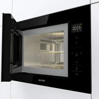 Микроволновая печь GORENJE BM251SG2BG имеет объем 25 литров и мощность микроволн 900 Вт. Управление электронное с английским языком панели, включает 5 ступеней регулировки мощности, звуковой сигнал окончания приготовления и возможность его отключения. Дверца открывается нажатием справа налево. Внутренняя камера из нержавеющей стали оснащена поворотным столом диаметром 315 мм. Модель предлагает 15 программ, включая автоматическую разморозку, автоматическое приготовление и режим гриля с мощностью 1000 Вт. Имеется кварцевый гриль, функция размораживания по весу и комбинированный режим микроволны с грилем. Корпус содержит дисплей и часы, есть внутреннее освещение и блокировка от детей. Комплектуется решеткой для гриля. Реализована система очистки AquaClean. Размеры (ШхВхГ) составляют 59.5 х 38.8 х 40.1 см, размеры ниши (ШхВхГ) - 56 х 38 х 50 см. Вес устройства 19.5 кг.