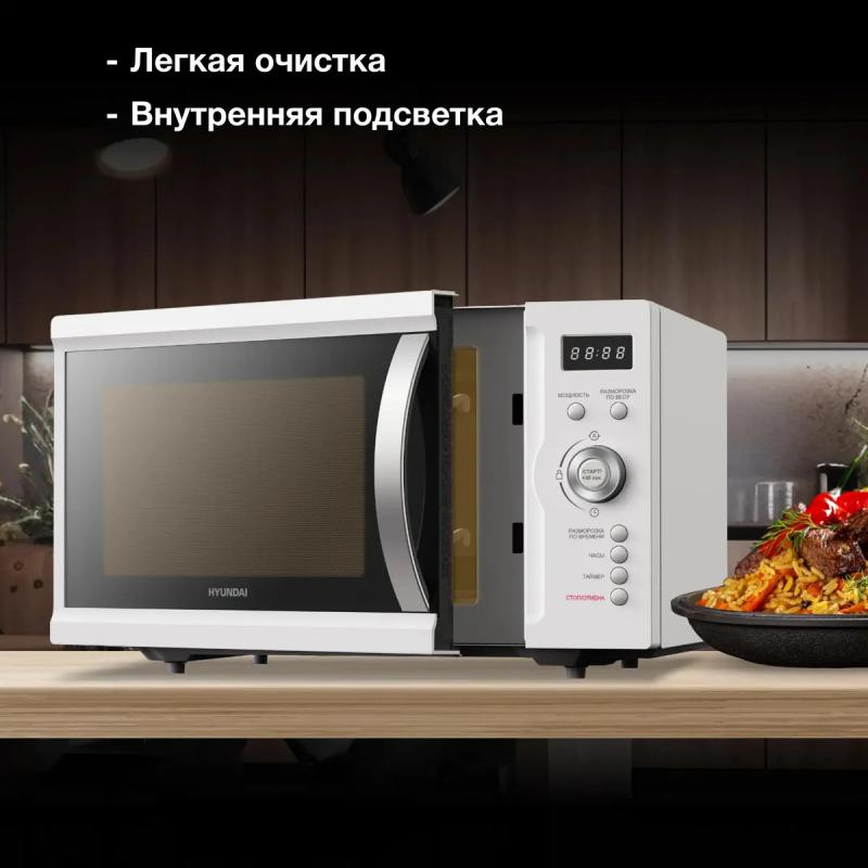 Микроволновая печь HYUNDAI HYM-D3007 обладает объемом 23 л и мощностью 800 Вт. Оснащена электронным управлением и дисплеем с часами. Дверца открывается справа налево с помощью ручки. Диаметр поворотного стола составляет 270 мм. Имеется функция блокировки от детей. Работает в соло режиме. Цвет белый. Размеры 450х350х270 мм, вес 11 кг.
