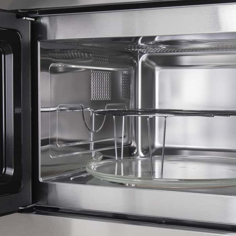 Встраиваемая микроволновая печь MAUNFELD MBMO.25.8S. Внутренний объем камеры составляет 25 л, а поддон диаметром 31.5 см. При работе потребляется около 1450 Вт мощности. Микроволновая печь оснащена автоматическими программами размораживания и разогрева. Также встроены программы приготовления наиболее распространенных блюд. Предусмотрена возможность использования микроволновой печи как гриля мощностью 1000 Вт. Таймер можно выставить максимально на 95 мин. Безопасность обеспечивается блокировкой от детей.