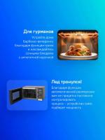 Микроволновая печь PANASONIC NN-GD38HSZPE с объемом 23 литра оснащена электронным управлением и системой открытия дверцы кнопкой справа налево. На корпусе расположен дисплей. Модель включает функции быстрого старта, кнопку добавления 30 секунд и регулировку мощности микроволн до 1000 Вт. Камера покрыта эмалью, диаметр поворотного стола составляет 285 мм. Имеется кварцевый гриль мощностью 1000 Вт. Предусмотрены режимы автоматической разморозки, автоматического приготовления и комбинированный режим микроволн плюс гриль. Дополнительно включены функции блокировки от детей, задержки пуска, инверторного управления мощностью и программирования процесса приготовления. В комплект входит решетка для гриля. Модель предлагает 15 автоматических программ: три для разогрева и двенадцать для автоприготовления. Оснащена новым поколением инвертора и светодиодной подсветкой. Цвет корпуса черный с элементами нержавеющей стали. Габариты устройства 48.8 х 27.9 х 39.5 см, вес 10 кг.