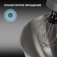 Планетарный миксер HYUNDAI HYM-S5451 оснащен мотором мощностью 1000 Вт и обеспечивает работу на 8 скоростных режимах с возможностью импульсного включения. Модель имеет металлическую чашу объемом 4.5 литра с максимальной загрузкой 1.5 кг. Скорость вращения насадок составляет 140 оборотов в минуту. Корпус выполнен из пластика с прорезиненными ножками для устойчивости. Безопасность использования соответствует классу защиты II. В комплект входят три насадки: венчик для взбивания, крюки для теста и лопатка для перемешивания. Дополнительно поставляются защитный обод и книга рецептов. Длина электрического кабеля составляет 1.3 метра. Цвет миксера серый с черным. Размеры прибора 328 х 232 х 270 мм, вес 3.4 кг.