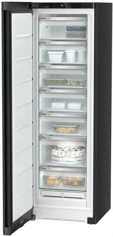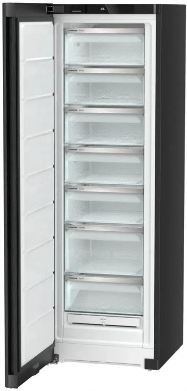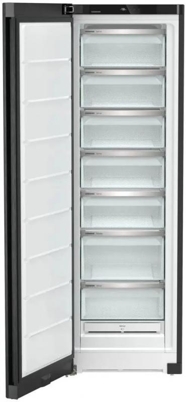 Морозильная камера LIEBHERR SFNbdd 5227 с электронным управлением и внутренним дисплеем оснащена системой No Frost. Общий объем составляет 271 л, количество ящиков - 7 штук. Камера имеет одинаковую температуру во всех отделениях и способна поддерживать температуру от -15°C до -28°C. Прибор класса энергопотребления A++ потребляет 230 кВт*ч в год. Мощность замораживания достигает 16 кг/сутки. В конструкции предусмотрены защита от детей, функция суперзаморозки, звуковая сигнализация незакрытой двери и индикация температуры. Дверь выполнена из металла черного цвета, возможна перенавеска. При отключении электропитания сохраняет холод до 14 часов. Уровень шума составляет 38 дБ. Ножки регулируются по высоте. Габариты модели: ширина 59.7 см, высота 185.5 см, глубина 67.5 см. Вес - 68.4 кг.