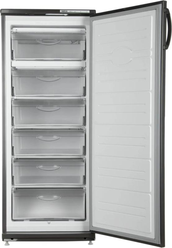 Морозильная камера АТЛАНТ M-7184-060 с классом энергопотребления A оснащена одним компрессором и использует хладагент R600a. Общий объем составляет 240 л, полезный - 220 л. Прибор способен замораживать до 20 кг продуктов в сутки и поддерживать температуру -18 °C. Годовое потребление энергии равняется 341 кВт*ч. Управление электромеханическое. Система размораживания ручная. Уровень шума не превышает 39 дБ. При отключении электричества сохраняет холод до 17 часов. Корпус выполнен из металла с покрытием цвета мокрого асфальта. Однокамерная конструкция включает 6 ящиков и одну дверь, которую можно перевешивать. Имеется функция суперзаморозки. Размеры устройства составляют 60х150х63 см, вес - 56 кг. Климатический класс SN, T позволяет использовать камеру в разных условиях.