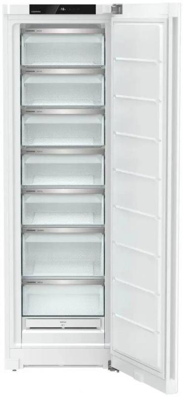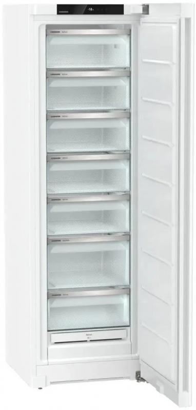 Морозильная камера LIEBHERR FNd 522i с электронным управлением и внутренним дисплеем оснащена системой No Frost. Объем 271 л включает 7 ящиков. Климатический класс N, SN, ST. Температурный режим от -28°C до -15°C. Мощность замораживания достигает 16 кг/сутки. Энергопотребление класса A++ составляет 230 кВт*ч/год. Функции суперзаморозки и защиты от детей. Индикация температуры и открытой двери. Автономное сохранение холода при отключении питания до 14 часов. Уровень шума 38 дБ. Однокамерная конструкция с металлической дверью. Возможность перевешивания двери и регулировки высоты ножек. Цвет белый. Габариты 59.7х185.5х67.5 см. Вес 66.1 кг.