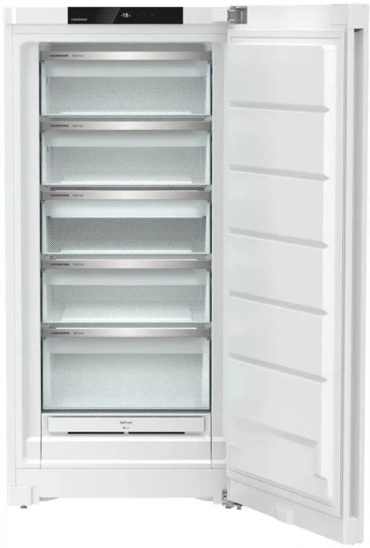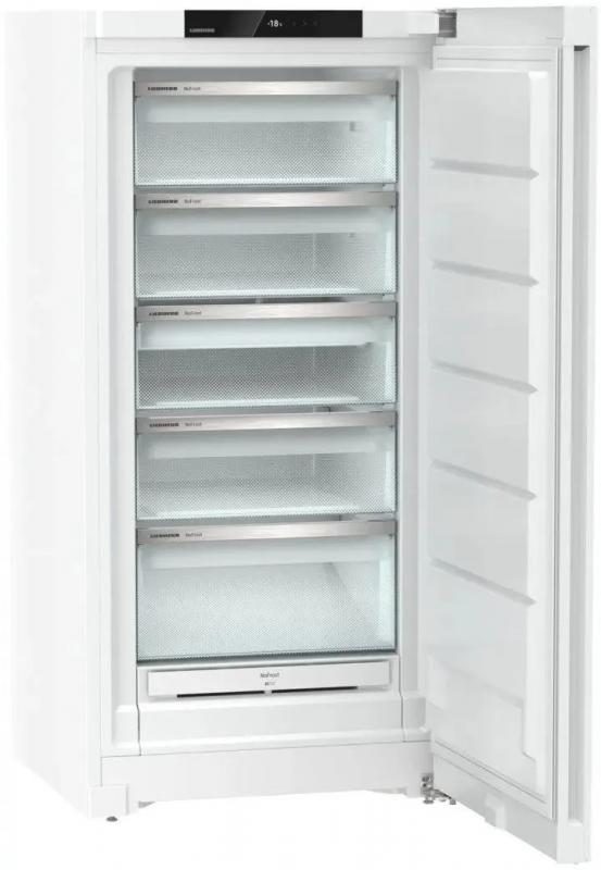Морозильная камера LIEBHERR FNd 6625 FrostProtect обладает полезным объемом 256 литров и общим объемом 307 литров. Устройство имеет один компрессор и электронное управление с внутренним дисплеем. Система No Frost обеспечивает автоматическое размораживание. Годовое потребление энергии составляет 211 кВт*ч при классе энергоэффективности A++ по европейской классификации E. Прибор оснащен функцией суперзаморозки и может эксплуатироваться в неотапливаемых помещениях. Индикация включает оповещение о неисправностях, открытой двери, работе и температуре. Камера оборудована пятью ящиками и подносом для замораживания. Время сохранения холода при отключении питания - 14 часов. Уровень шума составляет 40 дБ. Корпус выполнен из металла белого цвета с регулируемыми по высоте ножками. Размеры (ШхВхГ): 69.7 х 145.5 х 76 см. Вес: 64.5 кг.