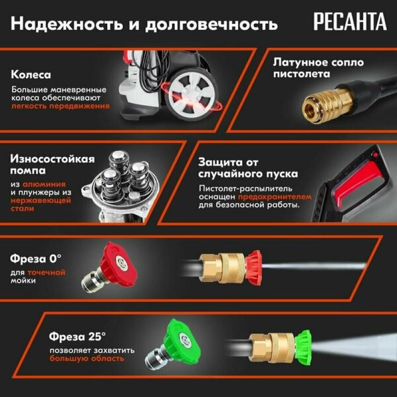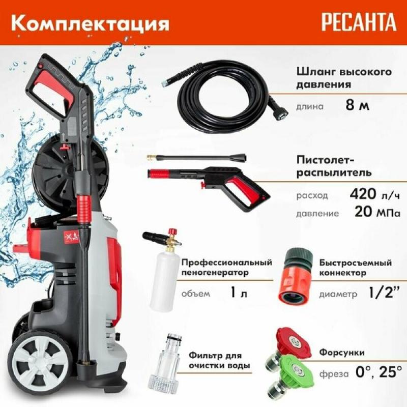 Мойка высокого давления РЕСАНТА МР-200БП с электрическим двигателем мощностью 2500 Вт обеспечивает максимальное рабочее давление до 200 бар. Устройство поддерживает температуру воды на входе до 50 °С и допускает давление воды на входе до 4 бар. Корпус насоса изготовлен из алюминия. Предусмотрена возможность использования чистящего средства через внешний пистолет. Забор воды возможен из внешней емкости. Встроенный фильтр грубой очистки защищает оборудование от загрязнений. Система хранения аксессуаров размещена на корпусе. Длина шланга высокого давления 8 м. Сетевой кабель оснащен встроенным барабаном для удобного хранения. Устройство комплектуется профессиональным пеногенератором и быстросъёмным коннектором для подачи воды. Габариты: 380x325x600 мм. Вес без принадлежностей: 10.65 кг.