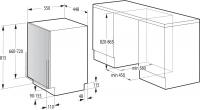 Представляем посудомоечную машину GORENJE GV520E10S с узким типом конструкции и полной встраиваемостью. Модель предусматривает загрузку до 11 комплектов посуды и оснащена конденсационной системой сушки. Расход воды варьируется от 9.5 до 15.3 литров, уровень шума не превышает 47 дБ. Машина предлагает 5 программ мойки: Быстрая, Интенсивная, Эко, Замачивание и Ежедневная, а также работает в 3 температурных режимах. Внутреннее пространство включает 3 корзины, среди которых отдельная для столовых приборов и полки для кружек. Управление электронное, предусмотрена защита от протечек AquaStop для корпуса и шланга заливки воды. Индикация оповещает о наличии соли и ополаскивателя, сопровождается звуковым сигналом. Поддерживается использование средств 3 в 1, установлен самоочищающийся фильтр. Классы эффективности: мойка A, энергопотребление A++, сушка A. Максимальная мощность составляет 1930 Вт, питание осуществляется от сети 220-240 В. Габариты (ШxВxГ): 44.8 x 81.5 x 55 см, вес 32.5 кг. Размеры ниши для встраивания: ширина 45 см, высота 82-86.5 см, глубина 58 см.