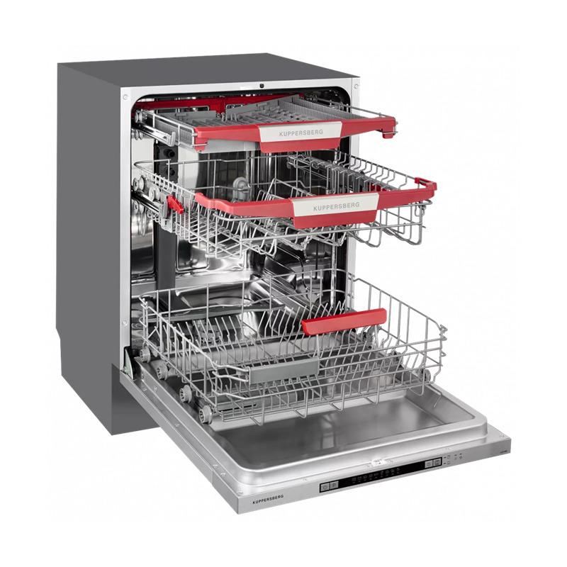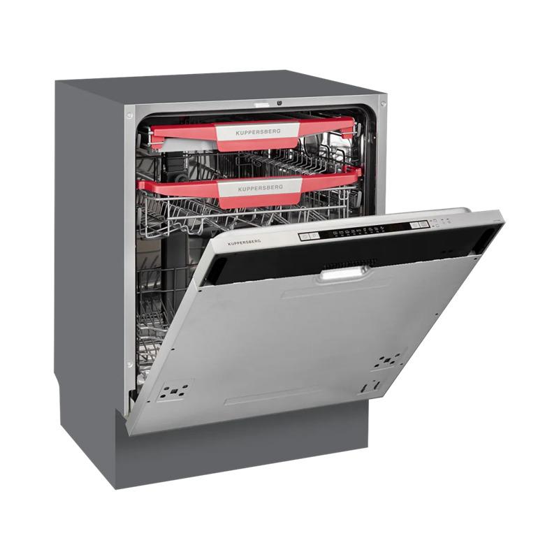 Встраиваемая посудомоечная машина Kuppersberg 60 см, 14 комплектов, 7 программ, внутреннее освещение, автоматическое открывание дверцы, 3 корзины, луч на полу, уровень шума 49 дБ, А+++.