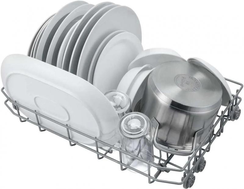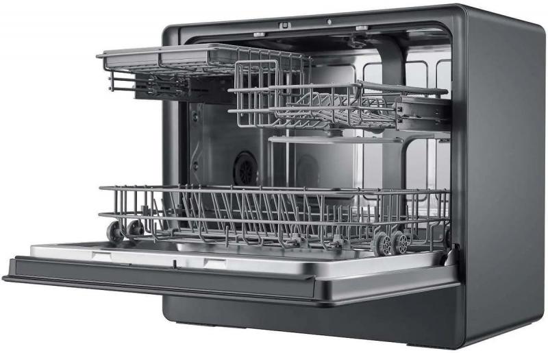 Компактная настольная посудомоечная машина MIDEA MCFD55S550Bi с конденсационной сушкой и электронным управлением имеет классы мойки и сушки A, энергопотребления A+. Оборудована дисплеем с черной панелью управления и двумя корзинами для загрузки 5 комплектов посуды. Расход воды составляет 8 литров, уровень шума достигает 58 дБ. Включает 5 основных программ: деликатную, интенсивную, стандартную, экономичную и экспресс-мойку. Доступны режимы интенсивная (60°С), стандартная (55°С), быстрая 30 мин (45°С), ECO (45°С), 90 минут (65°С), 60 минут (65°С), стекло (40°С) и самоочистка. Предусмотрена защита от детей и таймер отсрочки запуска на 1-24 часа. Поддерживает интеграцию в умный дом с голосовым помощником Алиса через экосистему Яндекс. Оснащена самоочищающимся фильтром. Размеры прибора 55х50х34.5 см, вес 20 кг.