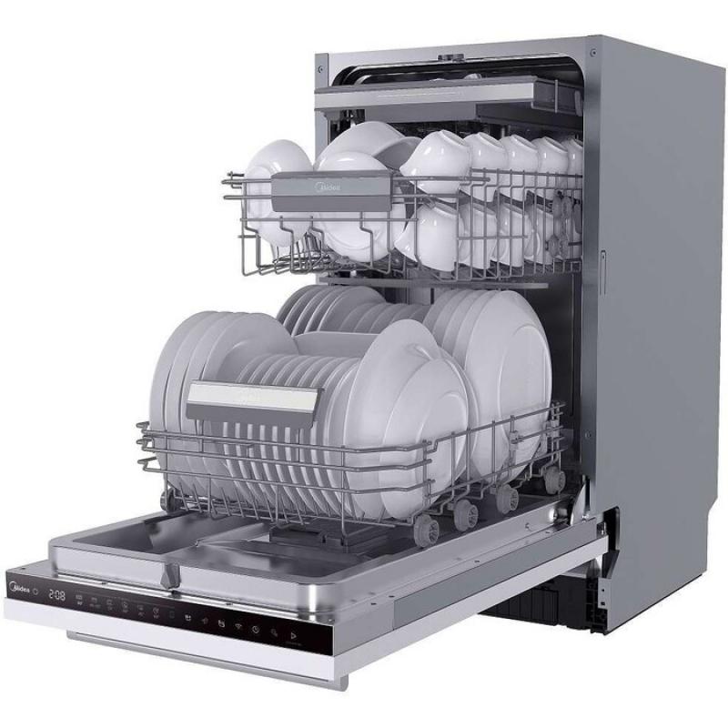Посудомоечная машина MIDEA MID45S450i с узким корпусом и полной встраиваемостью. Вмещает до 10 комплектов посуды. Оснащена тремя корзинами и разбрызгивателями, включая технологию Power Wash. Предусмотрено 6 программ мойки: авто, интенсивная, стандартная, быстрая, экономичная и ночная. Есть режим половинной загрузки. Сушка конденсационного типа дополнена системой ION Dishfresh. Управление сенсорное, дисплей присутствует. Оборудована защитой от протечек AquaStop и таймером отсрочки запуска до 24 часов. Минимальный расход воды - 9 литров. Уровень шума - 44 дБ. Совместима с голосовым помощником Алиса через экосистему Яндекс. Класс энергопотребления A+++. Мощность 1930 Вт. Габариты (ШхВхГ): 44.8x81.5x55 см, вес 33.94 кг.
