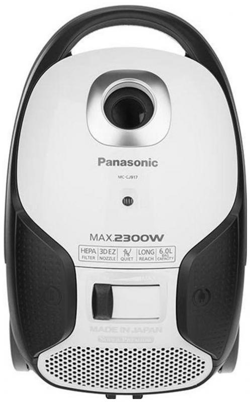 Пылесос Panasonic MC-CJ917W представляет собой мешковой пылесос с потребляемой мощностью 2300 Вт и объемом пылесборника 6 литров. Модель выполняет сухую уборку и оснащена металлической трубой всасывания. В комплект входит универсальная насадка для пола и ковра. Управление расположено на корпусе, радиус действия составляет 8 метров. Уровень шума при работе достигает 60 дБ. Питание осуществляется от сети 220В. Корпус выполнен в белом и черном цвете.
