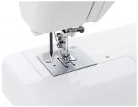 Швейная машина Janome Sakura 95 имеет белоснежный корпус с красными цветами. 15 функций, в том числе, выметывание бельевых петель в режиме полуавтомата, оверлочную, прямую, смещенную, потайную строчки и прочее. Скорость движения иглы не более 450 стежков в минуту. За продвижение ткани отвечает трехполосный нижний транспортер. Облегчает процесс обработки текстильных изделий нитевдеватель, нитеобрезыватель, встроенная подсветка в виде лампы накаливания. Вес: 5.7 кг.