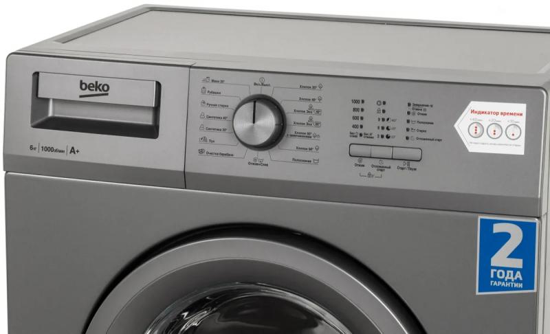 Стиральная машина BEKO WRE65P1BSS с фронтальной загрузкой и электронным управлением. Вмещает до 6 кг белья, скорость отжима регулируется от 400 до 1000 об/мин. Диаметр люка 30 см, угол открытия 170°. Уровень шума при стирке 61 дБ, при отжиме 77 дБ. Расход воды за цикл 47.5 л. Барабан из нержавеющей стали, бак пластиковый. Предусмотрена блокировка от детей, контроль пены и уровня воды, защита от перелива. Таймер отсрочки запуска до 9 часов. Включает 15 программ стирки для разных типов ткани. Классы: стирки A, отжима C, энергопотребления A. Потребляемая мощность 1550 Вт. Габариты 60х84х41.5 см, вес 55 кг. Цвет серебристый.