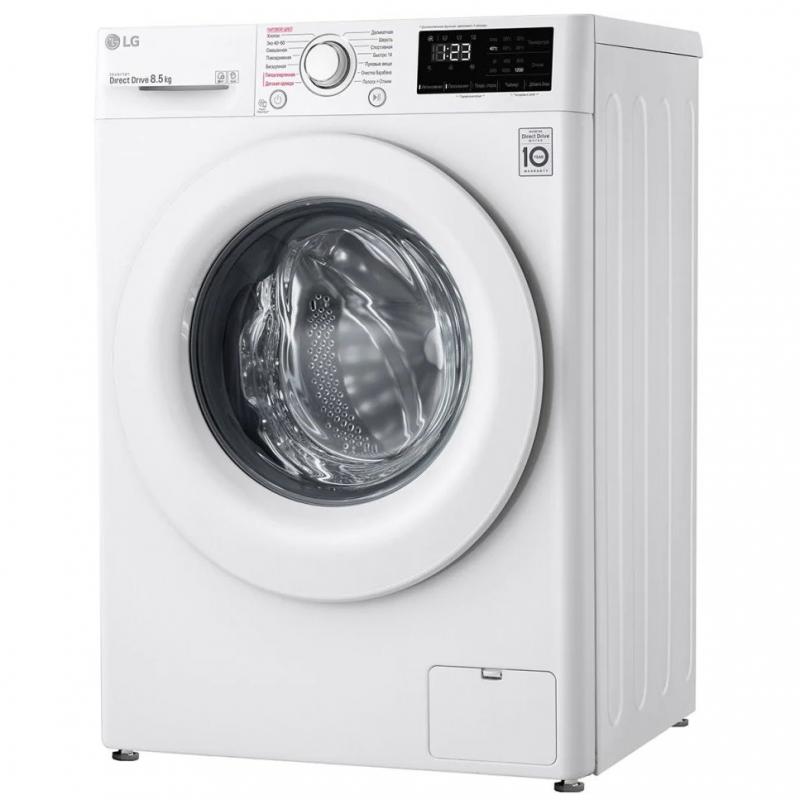 Стиральная машина LG F2V3GS3W с фронтальной загрузкой оснащена инверторным мотором с прямым приводом. Вместимость до 8.5 кг, скорость отжима до 1200 об/мин. Управление электронно-механическое, панель на русском языке. Диаметр люка 35 см, открывание вправо под углом 150°. Уровень шума при стирке 54 дБ, при отжиме 70 дБ. Расход воды 55 л. Предусмотрены защита от детей, контроль пены, самодиагностика, таймер отсрочки до 19 ч. 14 программ и 4 режима, включая паровую обработку. Температура стирки регулируется от 20 до 90°C. Классы: стирки A, отжима B, энергопотребления A. Габариты (ШхВхГ) 60х85х47.5 см, глубина с выступами 53.5 см, вес 56 кг.