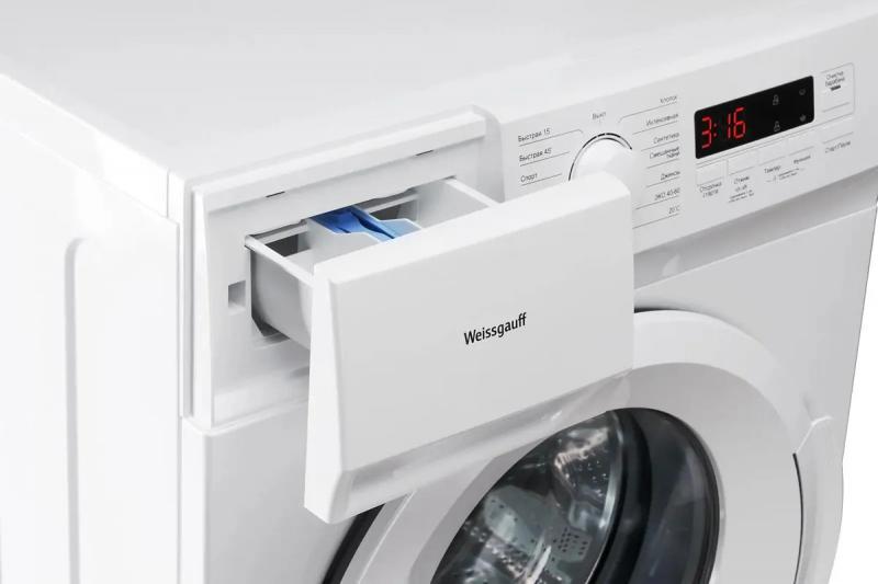 Стиральная машина WEISSGAUFF WM 4106 D с фронтальной загрузкой на 6 кг белья. Управляется электронно, оснащена дисплеем и защитой от детей. Диаметр люка 28.8 см, открывание влево. Скорость отжима до 1000 об/мин, класс отжима C. Уровень шума при стирке 64 дБ, при отжиме 79 дБ. Расход воды 43 л, объем барабана 39.5 л. Есть таймер отсрочки запуска до 24 часов. Включает 15 программ, в том числе быстрые режимы на 15 и 45 минут. Класс энергопотребления A+, мощность 2050 Вт. Габариты 59.5х85х40 см, вес 52 кг. Цвет белый.