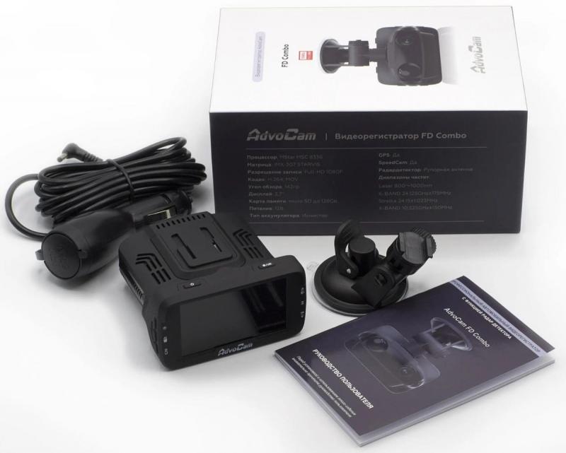 Видеорегистратор ADVOCAM FD Combo оснащен процессором MSTAR 8336 и сенсором Sony IMX307. Устройство имеет угол обзора первой камеры 142° и записывает видео с частотой 30 кадров в секунду. Встроенный дисплей с диагональю 2.7 дюйма позволяет просматривать записи. Радар-детектор поддерживает диапазоны Х (10.525 ГГц ± 150 МГц) и K (24.125 ГГц ± 175 МГц), обнаруживает комплексы "Стрелка" и лазерное излучение в диапазоне 800-1000 нм. Модель оборудована GPS-модулем и суперконденсатором. В комплект входит рупорная антенна. Устройство оснащено одним слотом для карты памяти. Габариты регистратора составляют 90х60х30 мм, вес - 180 грамм.