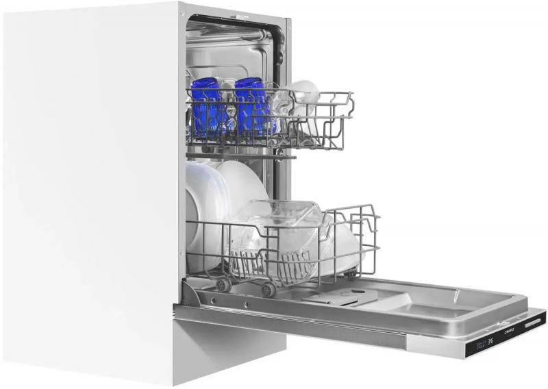 Представляем посудомоечную машину MAUNFELD MLP-082D с узким типом установки и загрузкой 9 комплектов посуды. Модель оснащена электронным управлением и дисплеем, имеет 6 программ мойки: интенсивную, стандартную, экономичную, для стеклянной посуды, экспресс-программу и программу "90 минут". Время мойки при обычной программе составляет 90 минут. Тип сушки конденсационный. Расход воды достигает 9 литров, уровень шума - 49 дБ. Безопасность обеспечивается защитой от протечек и таймером отсрочки запуска до 24 часов с минимальным интервалом 1 час. Индикация включает оповещение о наличии ополаскивателя и соли. Поддерживается использование средств 3 в 1. Класс мойки A, класс энергопотребления A++, класс сушки A. Потребляемая мощность составляет 2100 Вт при напряжении 220-240 В. Цвет панели управления черный. Габариты машины 44.8 x 81.5 x 55 см, размеры ниши для встраивания: ширина 45 см, высота от 82 см, глубина 56 см. Вес нетто 30.5 кг.