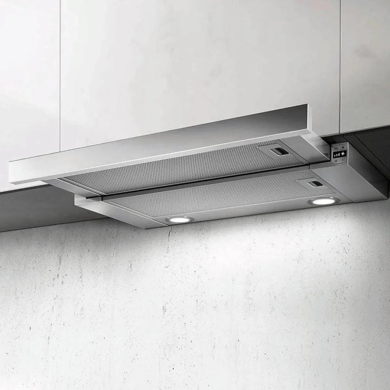 Вытяжка ELICA 26 IX/A/90 работает в режимах отвода и рециркуляции воздуха. Управление осуществляется кнопочным способом с возможностью выбора из трех уровней мощности. Модель оснащена одним двигателем мощностью 180 Вт и обеспечивает максимальную производительность 900 м3/час. Уровень шума составляет 44 дБ. В комплектацию входит алюминиевый жироулавливающий фильтр. Диаметр штуцера для отвода воздуха равен 150 мм. Техника оборудована светодиодной подсветкой общей мощностью 5 Вт. Имеется индикатор загрязнения фильтра, антивозвратный клапан и таймер. Интенсивный режим работы повышает эффективность очистки воздуха. Угольный фильтр приобретается дополнительно. Корпус выполнен в серебристом цвете. Габариты вытяжки составляют 89.8x21.6x28 см, вес 12.2 кг. Размеры секции для встраивания 76х28 мм.