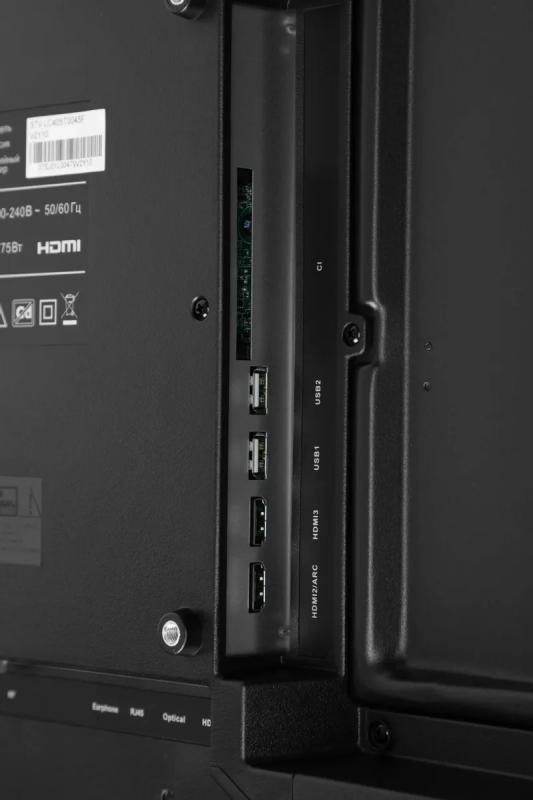 Телевизор SUPRA STV-LC40ST0045F с диагональю 40" и разрешением 1920x1080 поддерживает стандарты PAL, SECAM, оснащен процессором ARM Cortex-A55x4, операционной системой Android 9.0, имеет частоту обновления 60 Гц, время отклика 8 мс, углы обзора 178°/178°, яркость 250 кд/м2, контрастность 100000:1, акустическую систему 2.0 мощностью 20 Вт, оперативную память 1 ГБ, встроенную память 8 ГБ, интерфейсы HDMI x2, USB x2, CI+/PCMCIA, RJ-45, S/PDIF оптический и коаксиальный, потребляет 75 Вт, размер VESA 200x200, размеры без подставки 903x518x96 мм, вес 7.5 кг.