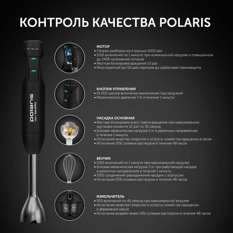 Блендер Polaris PHB 1510GL Silent, погружной, черный