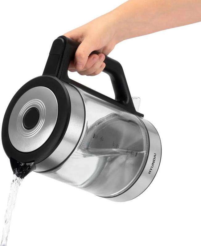 Чайник электрический Hyundai HYK-G3509, 2200Вт, черный и прозрачный
