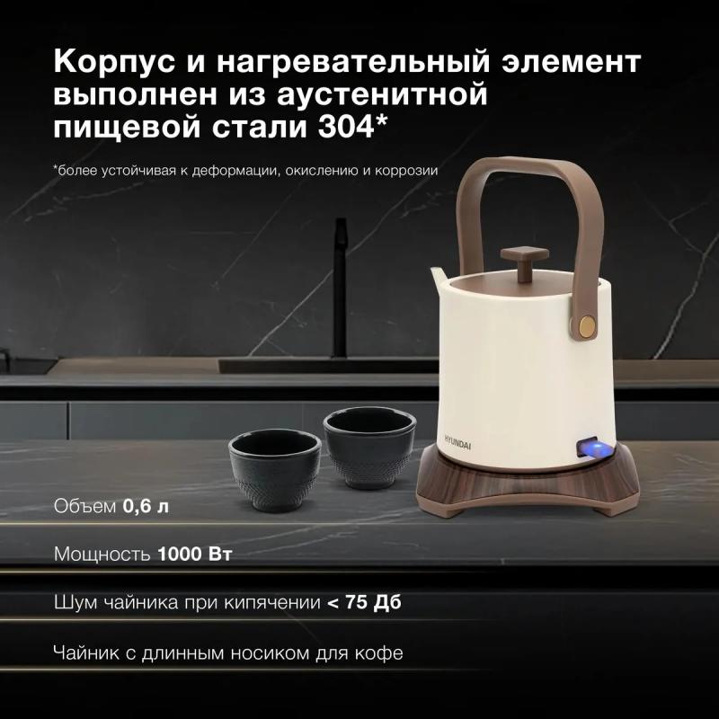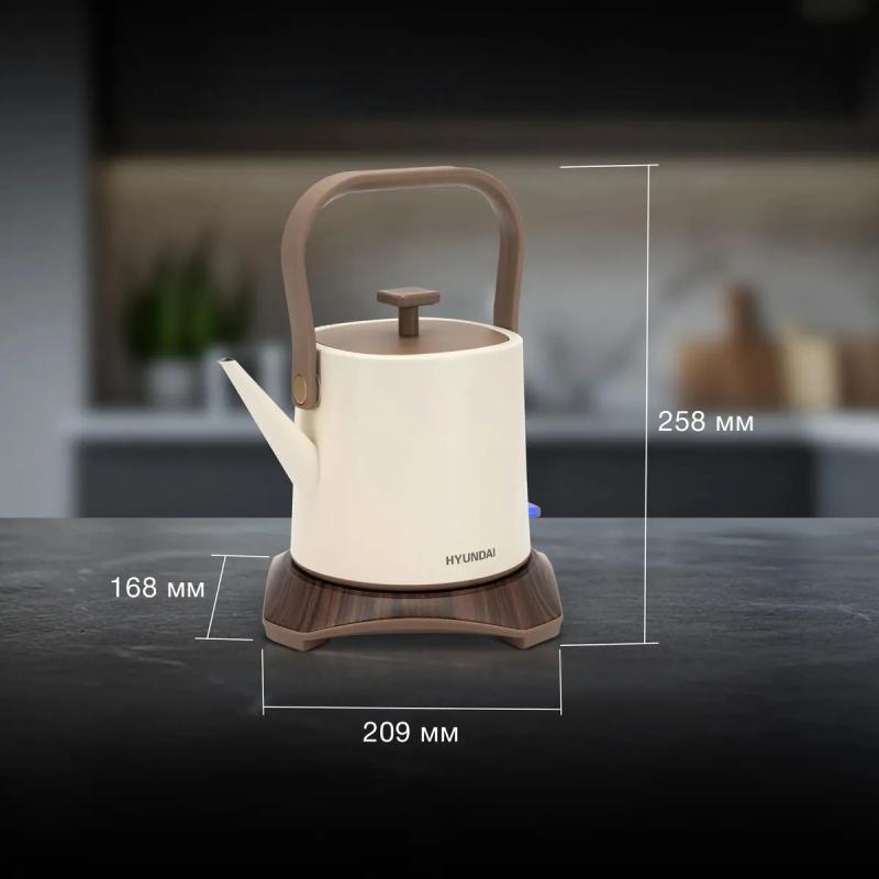 Чайник электрический Hyundai HYK-S2043, 1000Вт, кремовый и коричневый