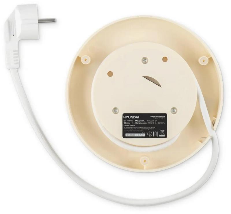 Чайник электрический Hyundai HYK-S3605, 2200Вт, кремовый