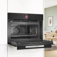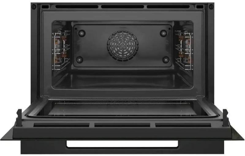 Духовой шкаф BOSCH CMG9241B1 сочетает функции духовки и микроволновой печи. Прибор оснащен электронным управлением с сенсорными переключателями и дисплеем. Мощность подключения составляет 3600 Вт, объем камеры - 45 литров. Модель поддерживает максимальную температуру 230 °C и имеет эмалевое покрытие для легкой очистки. В комплектацию входят конвекция, электрический гриль и функция подогрева посуды. СВЧ-мощность достигает 900 Вт. Духовой шкаф предлагает 10 автоматических программ и оснащена электронным таймером. Конструкция включает трехслойное стекло дверцы, светодиодное освещение и систему защиты от детей. Телескопические направляющие обеспечивают удобство использования. Габариты прибора составляют 59.4 х 54.8 х 45.5 см при весе 36.9 кг. Размер ниши для встраивания - 56 x 55 x 45 см.